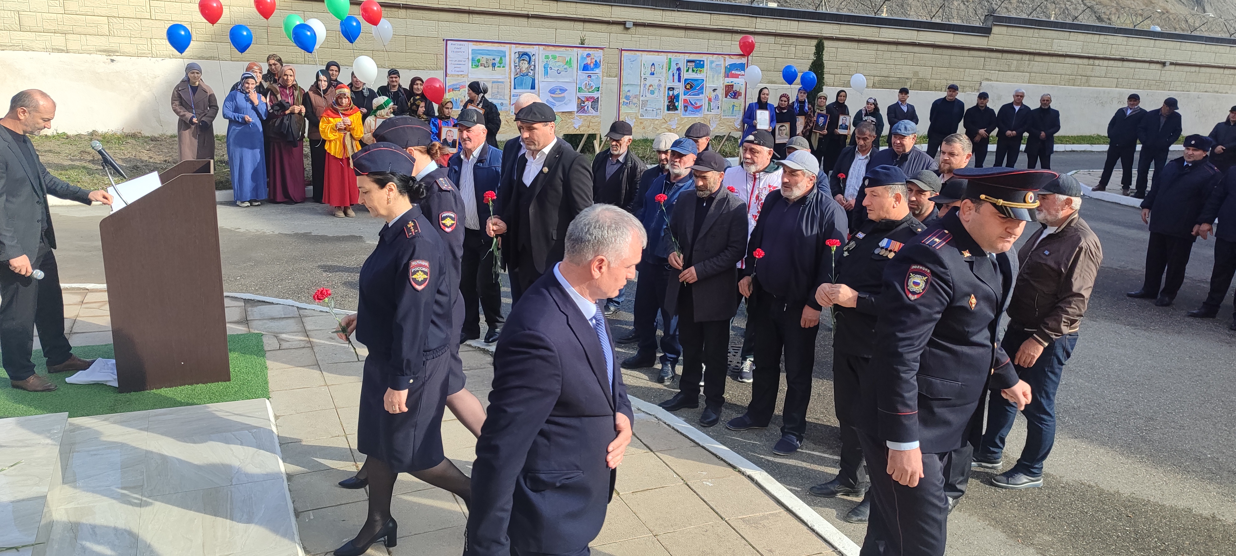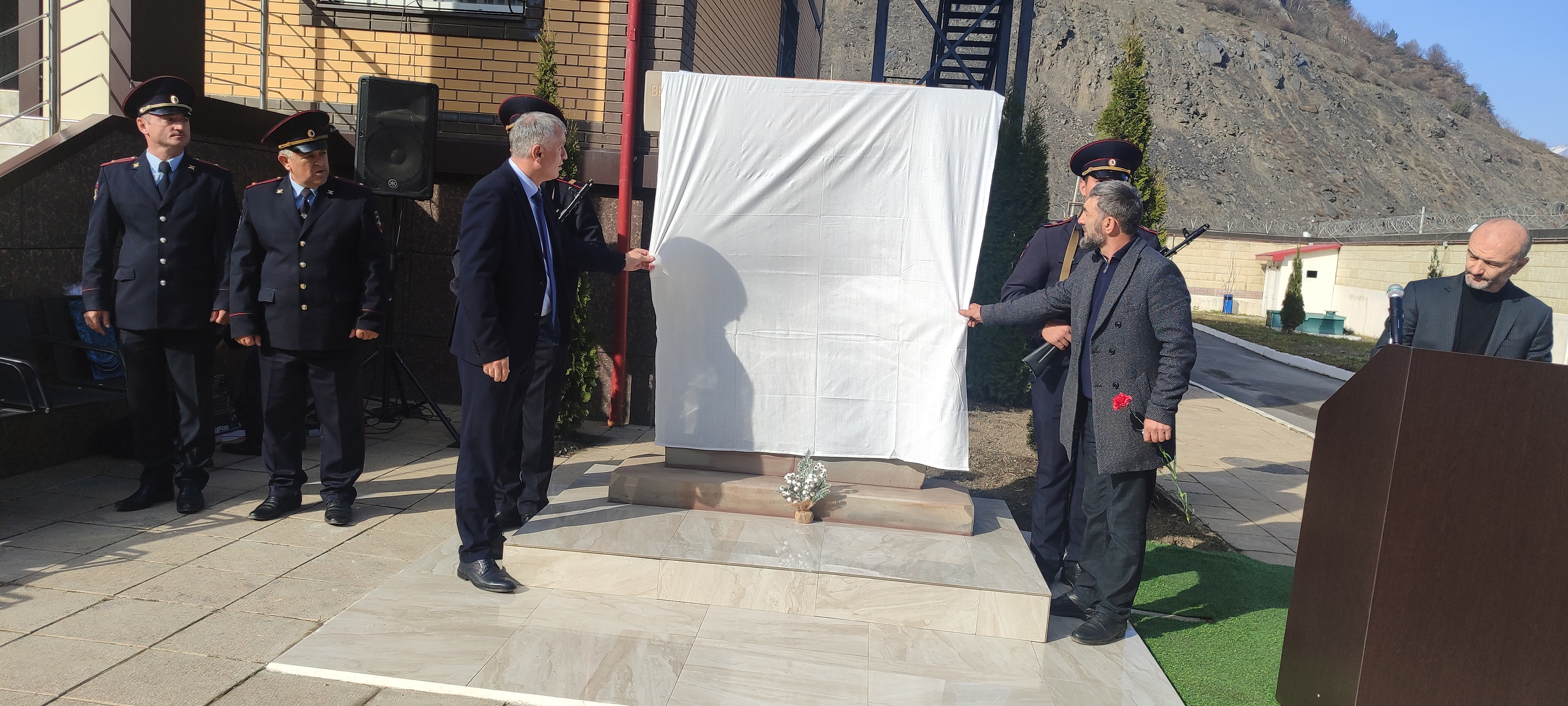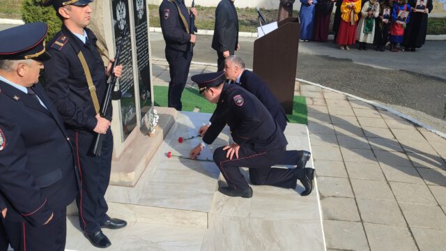 Мероприятия начались у здания РОВД с открытия памятника тляратинцам сотрудникам полиции, погибшим при исполнении служебного долга. Дань уважения своим павшим коллегам отдали как личный состав РОВД, так и ветераны, и гости.
