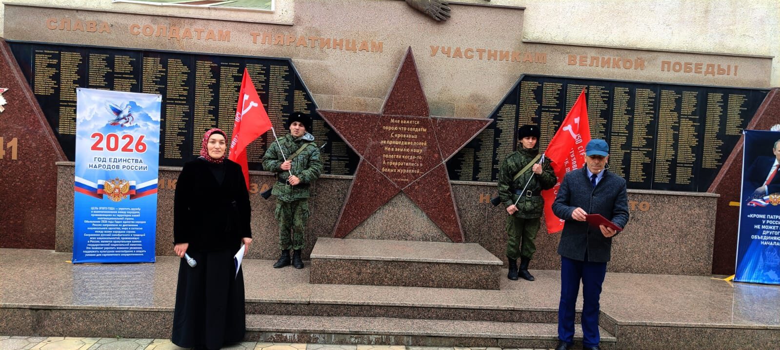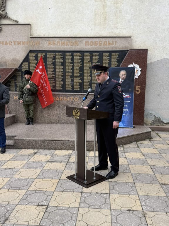 Мероприятие состоялось у памятника ветеранам Великой Отечественной войны во дворе районного Дворца культуры. Перед собравшимися выступили учащиеся школ района, а также представители управления культуры, подготовившие литературно‑музыкальную композицию, посвящённую подвигу фронтовиков. Глава Тляратинского района Мурад Рамазанов рассказал участникам акции об истории Знамени Победы и его значении для страны. Он подчеркнул важность сохранения памяти о героях войны и передачи этой памяти молодому поколению. С поздравительным словом также выступил начальник районного отдела полиции Рамазан Кулизанов, отметивший вклад ветеранов в мирную жизнь и необходимость бережного отношения к историческому наследию. Акция завершилась возложением цветов к памятнику и минутой молчания в честь павших.